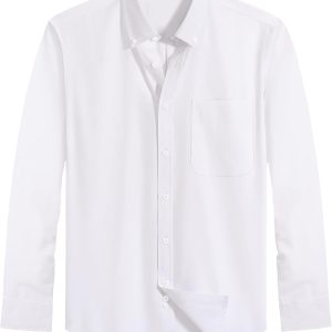 Men Dress Shirts Stretch Stain Shield Long Sleeve Solid Formal Shirt Business Casual Button Down Shirts